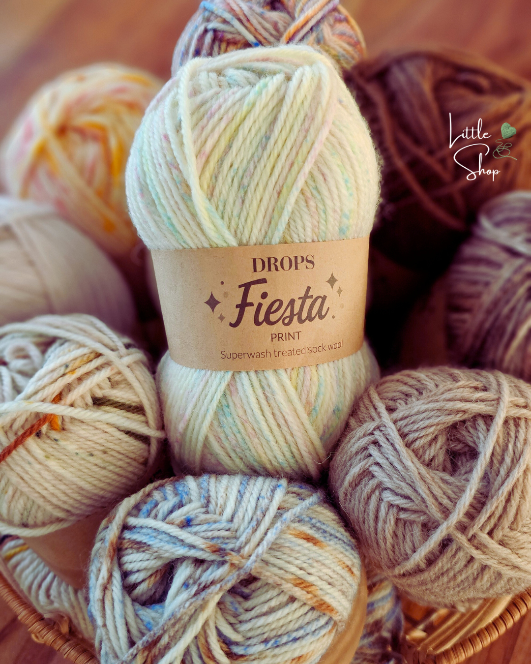 DROPS Fiesta ist eine lebendige, strapazierfähige vierfädige Sockenwolle mit Superwash-Ausrüstung, sodass sie in der Maschine gewaschen werden kann und pflegeleicht ist. Dieses fröhliche bunte Ganzjahresgarn ist wärmend und fühlt sich schön weich an - und es ist für viel mehr als nur für Socken geeignet: Probiere es auch für Pullover, Jacken und Mützen aus!