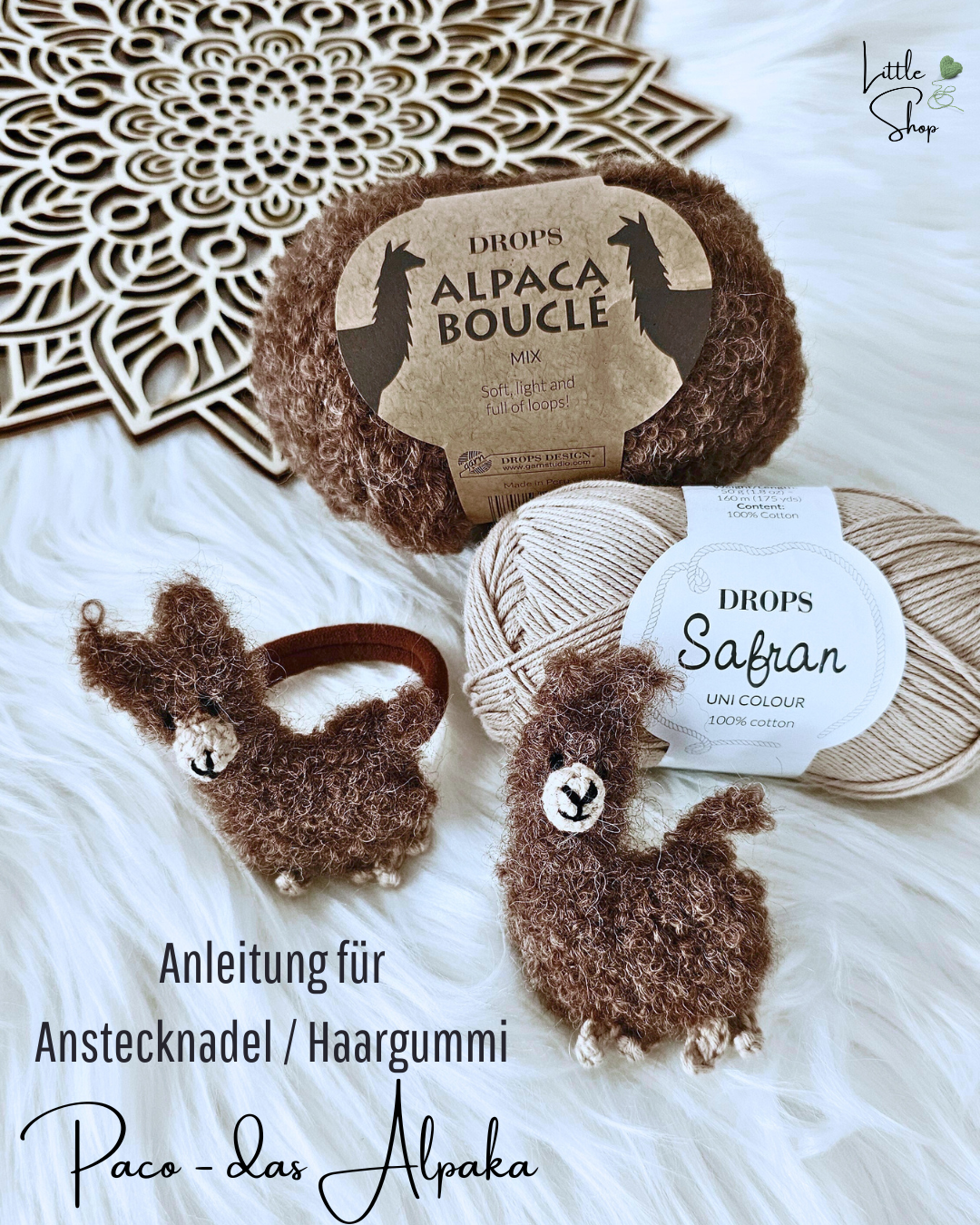 Anstecknadel / Haargummi Paco - das Alpaka