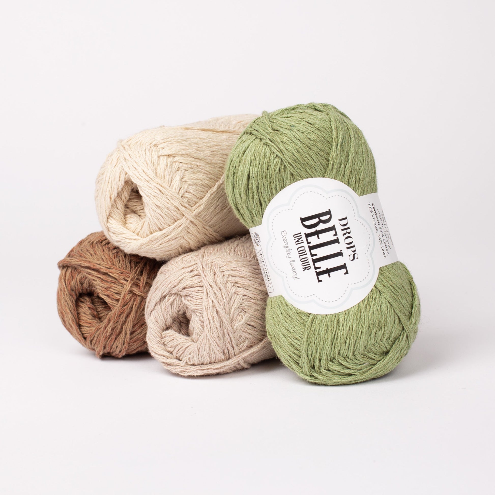 Der tolle Mix aus Baumwolle, Viskose und Leinen macht DROPS Belle zu einem atmungsaktiven Ganzjahresgarn mit dezentem Schimmer und wunderbarer Textur - und es kann bestens direkt auf der Haut getragen werden!