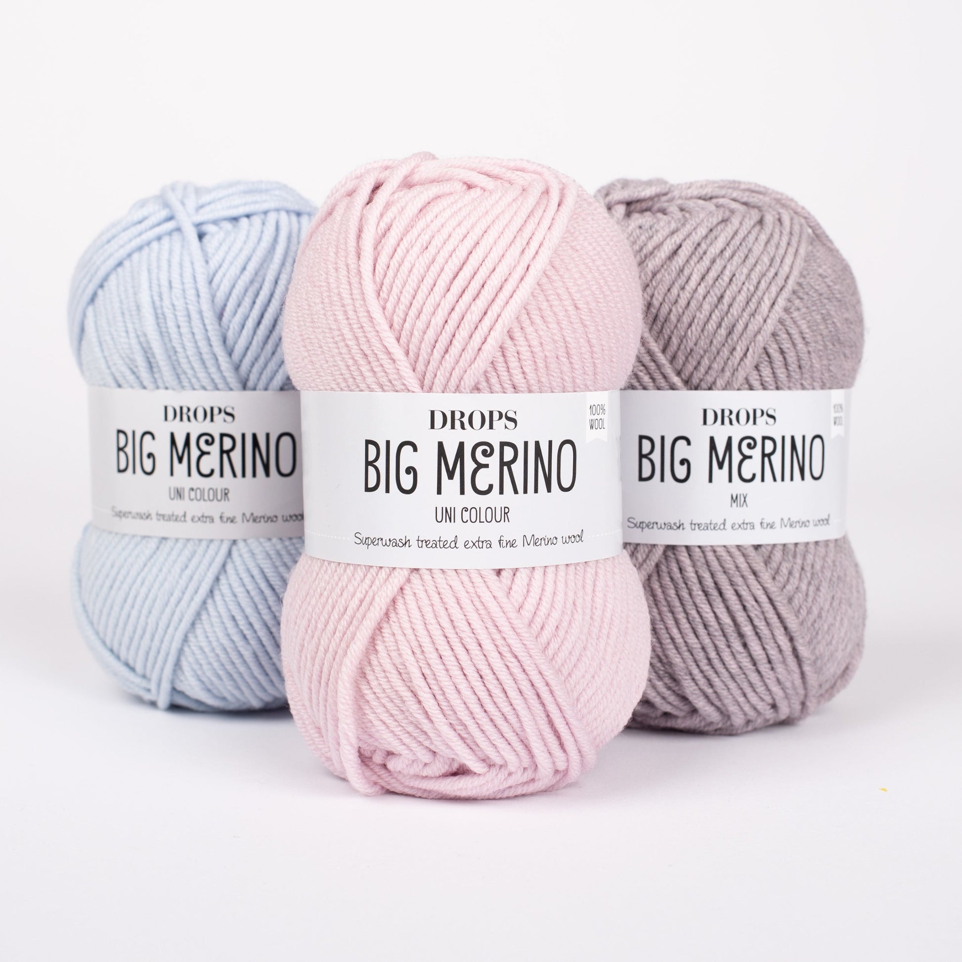 DROPS Big Merino ist ein aus vielen dünnen Einzelfäden gesponnenes Garn aus 100% Merinowolle extrafine, welche dem Garn die Elastizität verleihen. DROPS Big Merino zeichnet sich darüber hinaus durch Weichheit, Volumen und ein gleichmäßiges Maschenbild aus, daher ist es auch ideal für Strukturmuster wie z.B. Zöpfe geeignet.