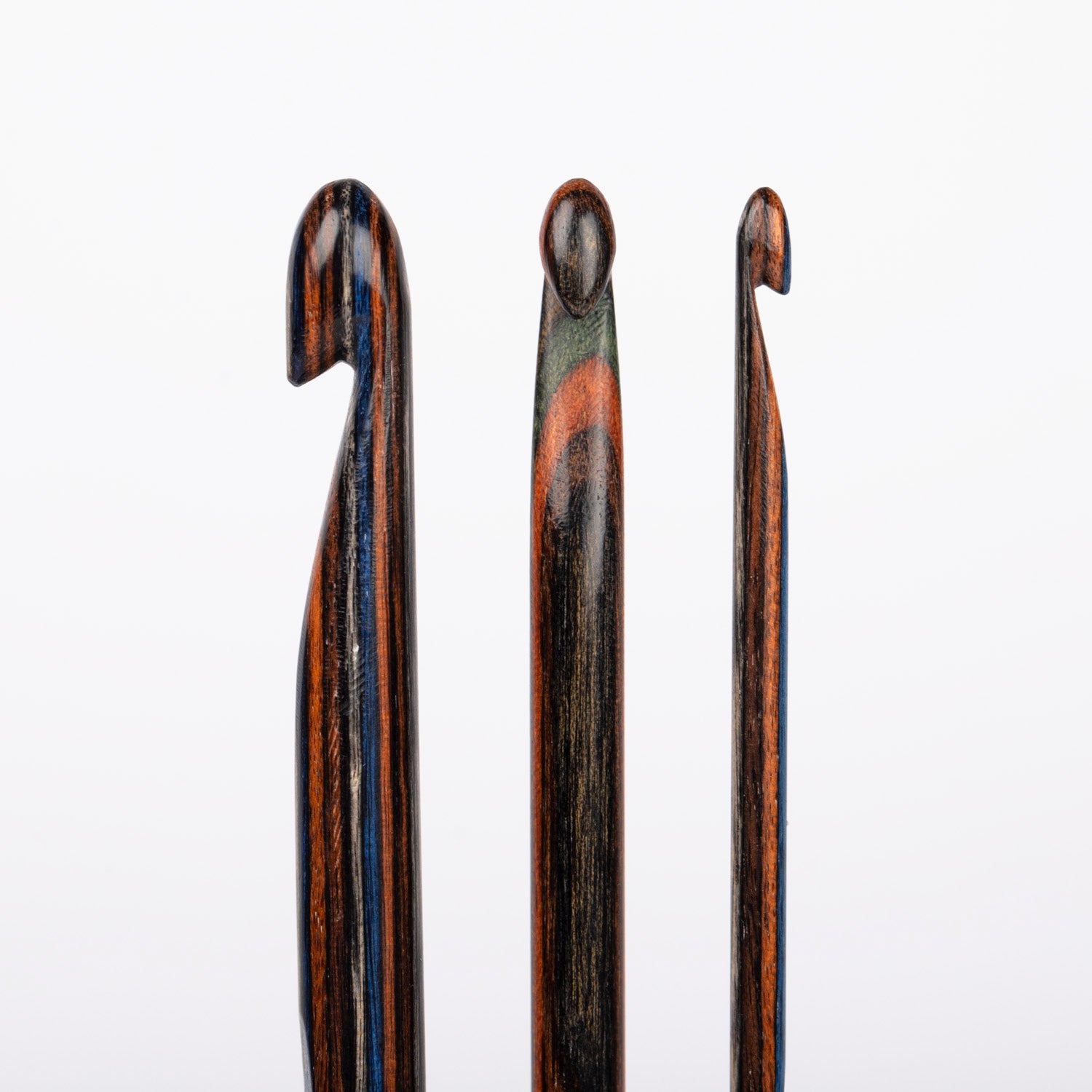 Häkelnadeln aus Birkenholz. Die Häkelnadeln sind 15 cm lang.