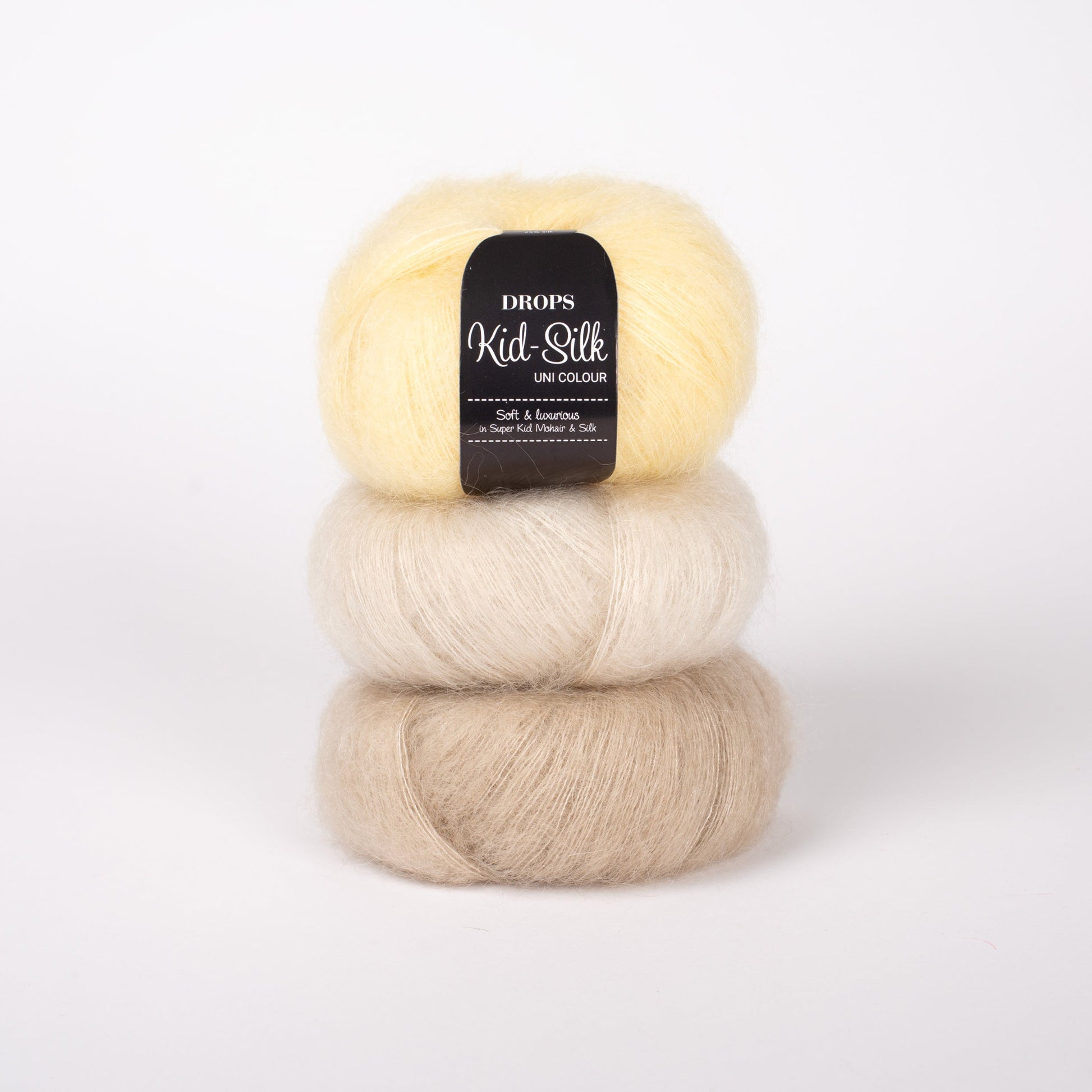Es ist perfekt für kleinere Projekte wie Tücher, Schulterwärmer und feminine Tops. DROPS Kid-Silk ist in vielen wunderschönen Farben erhältlich und ist unser beliebtestes Garn für Garnkombinationen!