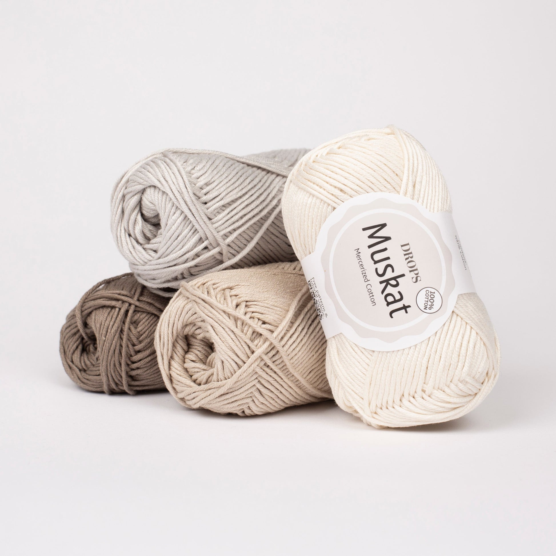 DROPS Muskat ist ein farbenfrohes Baumwollgarn aus 100% merzerisierter ägyptischer Baumwolle, die feinste langfaserige Baumwolle, die Sie finden können! Das Garn wird aus vielen dünnen Fäden gesponnen, wodurch es extrem haltbar und strapazierfähig wird, und es hat einen schönen Glanz und eine tolle Formstabilität.