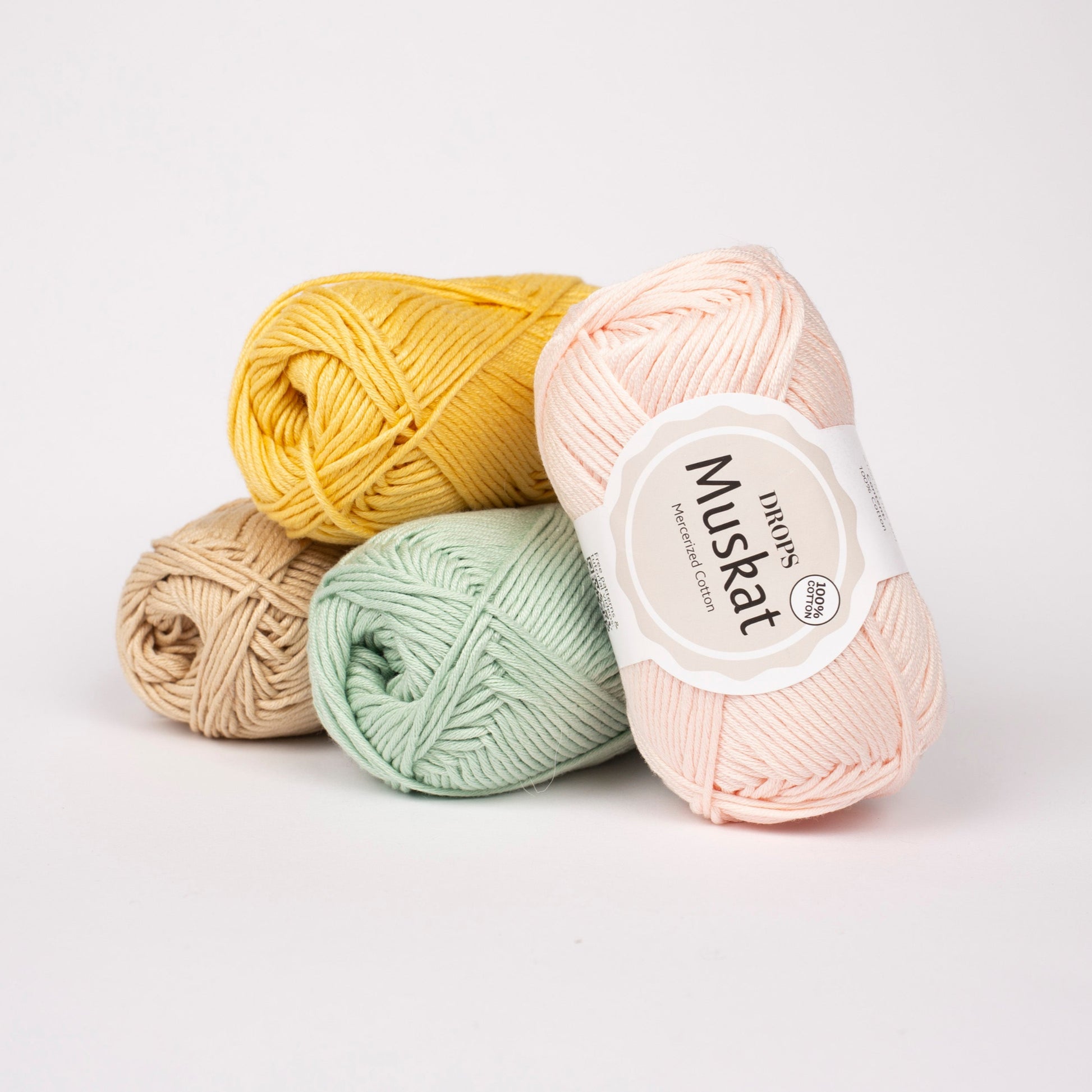 DROPS Muskat ist ein farbenfrohes Baumwollgarn aus 100% merzerisierter ägyptischer Baumwolle, die feinste langfaserige Baumwolle, die Sie finden können! Das Garn wird aus vielen dünnen Fäden gesponnen, wodurch es extrem haltbar und strapazierfähig wird, und es hat einen schönen Glanz und eine tolle Formstabilität.