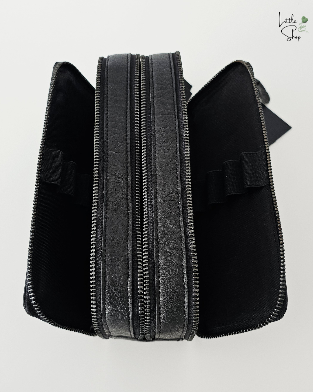 Die Tasche ist mit drei praktischen Fächern mit Reißverschluss ausgestattet, die es Ihnen ermöglichen, Ihre Werkzeuge und Accessoires zu organisieren. Zwei der Fächer haben elastische Bänder mit Taschen für Ihre Häkelnadeln und Nadelspiele. Das mittlere Fach eignet sich hervorragend zur Aufbewahrung von Garnknäueln.