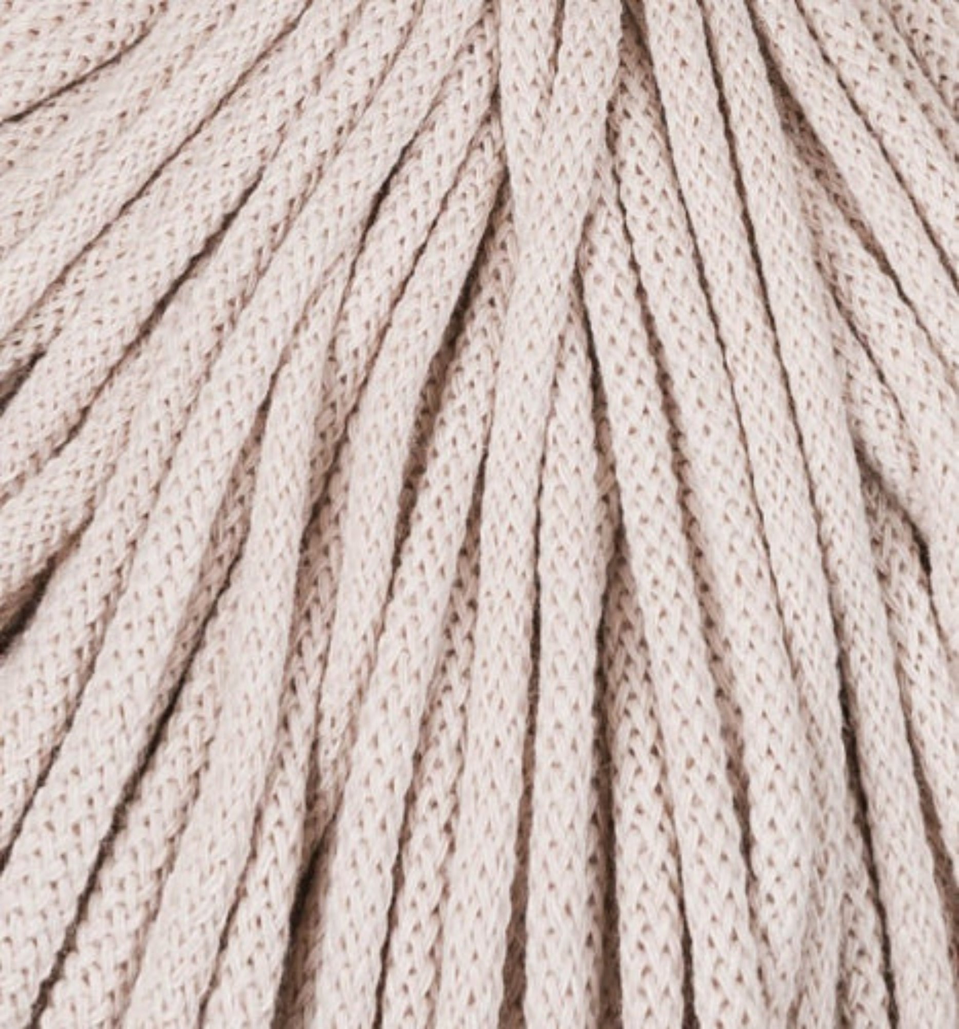 Ein neutraler Farbton. Es ist eine ideale Alternative zu Beige - es ist leichter und wärmer. Man kann diese Farbe als zart und cremig beschreiben. Sie ist dunkler, staubiger und kühler als Natural. Ideal geeignet für klassische Light-Macramé-Projekte und Hochzeitsaccessoires.