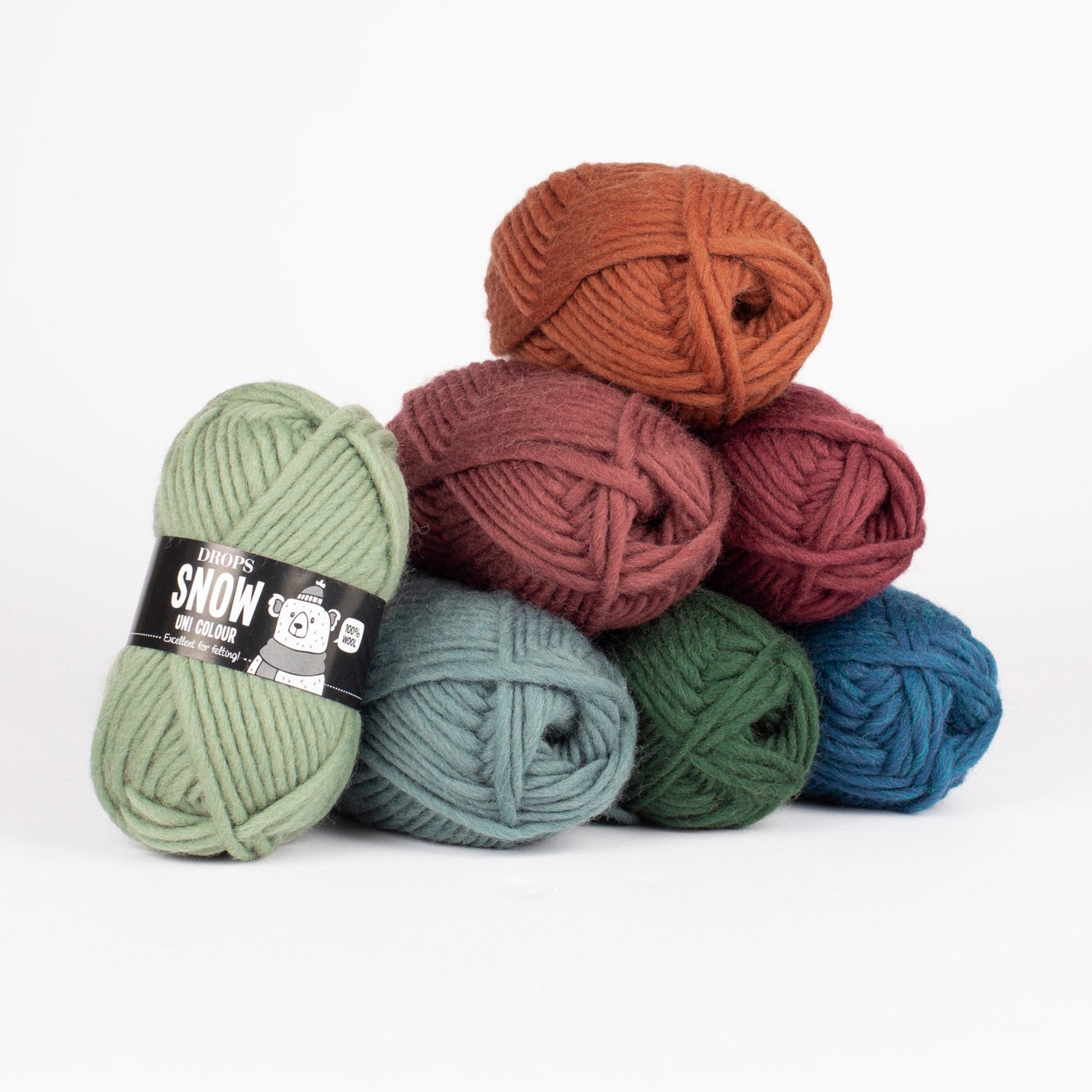 DROPS Snow ist ein sehr beliebtes Wintergarn, das in zwei verschiedenen Farbtypen erhältlich ist: einfarbig (uni) und als Mix-Farben, d.h. es werden mehrere Farben vor dem Spinnen zusammen kardiert, um einen Mischeffekt zu erzielen.